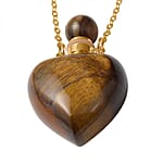 Yellow Tigers Eye Perfume Heart Bottle Necklace 22 Inches in ION Plated Yellow Gold Stainless Steel 8.00 ctw