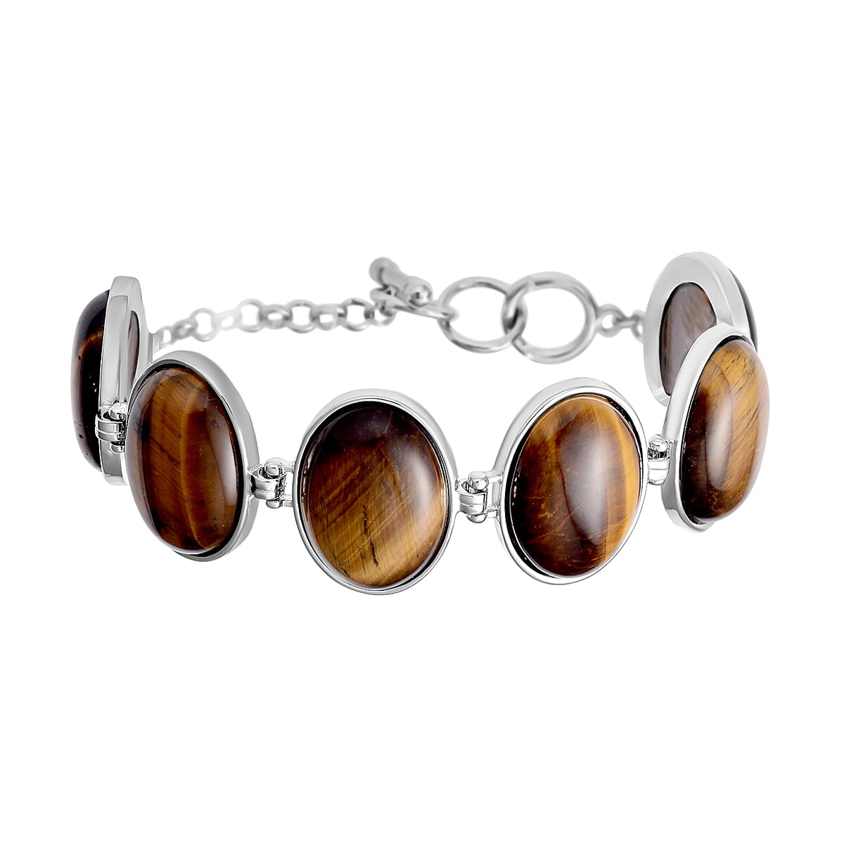 Yellow Tiger's Eye Station Bracelet in Silvertone (7.50-8.50In) 136.50 ctw