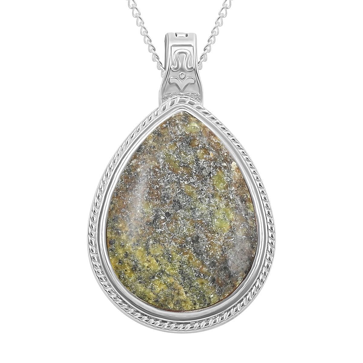 Yellow Turtle Jasper Drop Pendant Necklace 18 Inches in Silvertone 20.90 ctw
