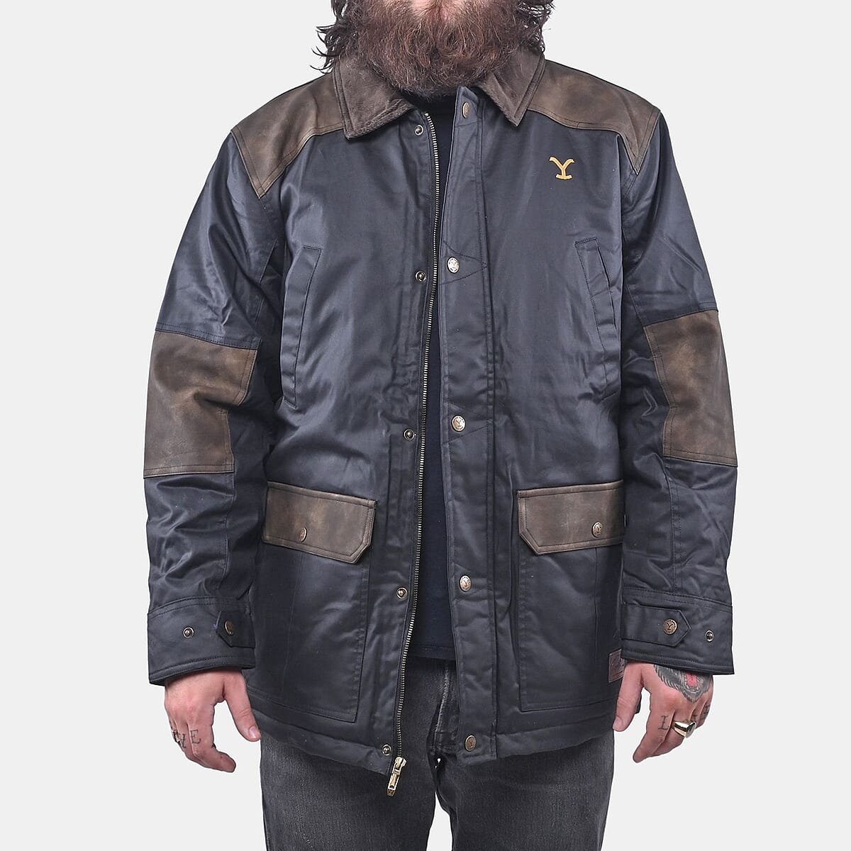 This Yellowstone men's wax cotton barn coat merges cowboy ruggedness with contemporary style, creating a durable and fashionable piece of outerwear. This coat offers superior weather resistance and durability. Its tailored fit and classic design details, including ample pockets and a distinct collar, ensure both functionality and a timeless aesthetic.