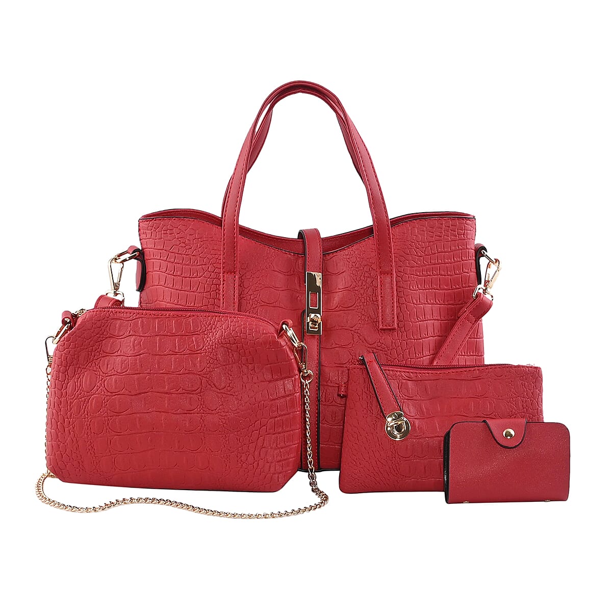 Upgrade your accessory collection with this designer bag set from HARPER & HYDE. This set of a satchel bag, crossbody bag, wristlet, and card case has ample roomy space to keep all your valuables safe and organized. It is made with durable vegan leather material and contains an attractive pattern. Carry this stunning bag set when heading outdoor, traveling, shopping, or chilling with friends.