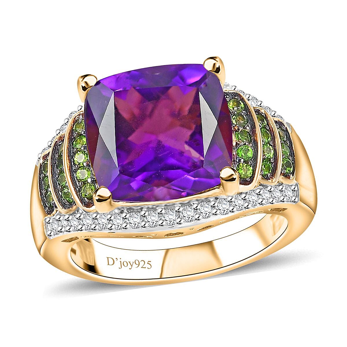 Zambian Amethyst and Multi Gemstone 5.85 ctw Stairs Ring in 18K Vermeil Yellow Gold Over Sterling Silver (Size 10.0)